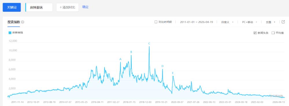 麻辣香锅是紧跟水煮鱼之后走红的“重口味”代表。凭借现炒模式和自选搭配,麻辣香锅在快餐与正餐之间劈开了一条路。2015年前后,麻辣香锅几乎成为各类商圈的标配,2018年前后,麻辣香锅的流量达到顶峰。但近两年,当“价格刺客”成为这个品类的新标签,麻辣香锅专门店声量大不如前。