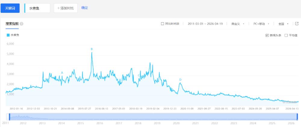 百度指数显示,水煮鱼近些年的搜索热度几乎在逐年下降。水煮鱼作为大单品,其早期走红可以追溯到千禧年前后。在当年那社交媒体并没有如此发达的背景下,北京一家小店因为这道菜火爆到让整条巷子出现交通堵塞。短时间内,水煮鱼专门店在全国遍地开花。但如今,以它为招牌的单品店越来越少。