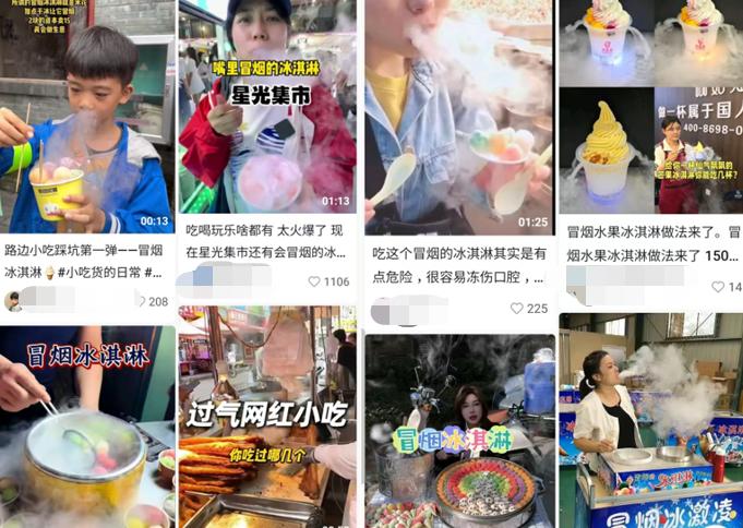 冒烟冰淇淋,端上来云雾缭绕,吃进嘴里口鼻一起“冒烟”。就是这个视觉奇观,当年让无数年轻人不惜排队数小时打卡。得益于当年的火爆,“冒烟冰淇淋”话题在抖音上沉淀下超过7000万的播放量。