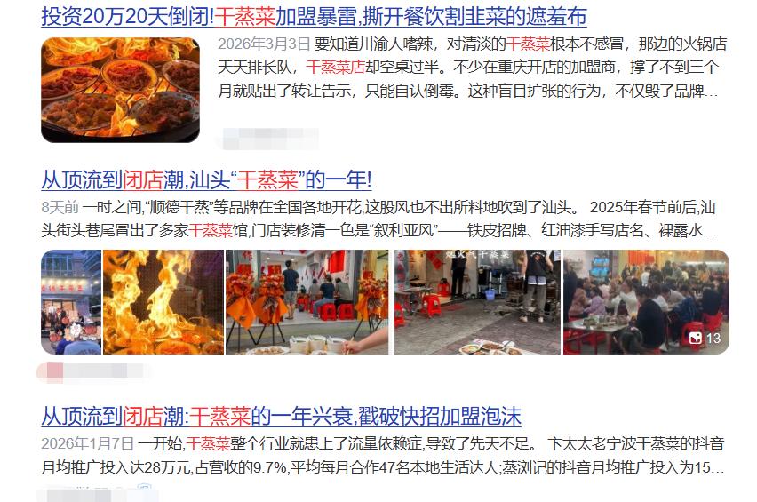 2025年初,打着“不加一滴水”“还原食材本味”旗号的干蒸菜馆在全国多地涌现,如今,社交平台上,大量干蒸菜馆门口贴上了“旺铺转租”的告示。小碗菜外卖同样如此,投资门槛相对较低,适合初次创业者尝试,但也意味着无数人同时涌入,竞争迅速白热化。这些品类,不一定“难吃”,但没有技术秘密、没有品牌忠诚度,门槛越低的品类,越难逃内卷的宿命。