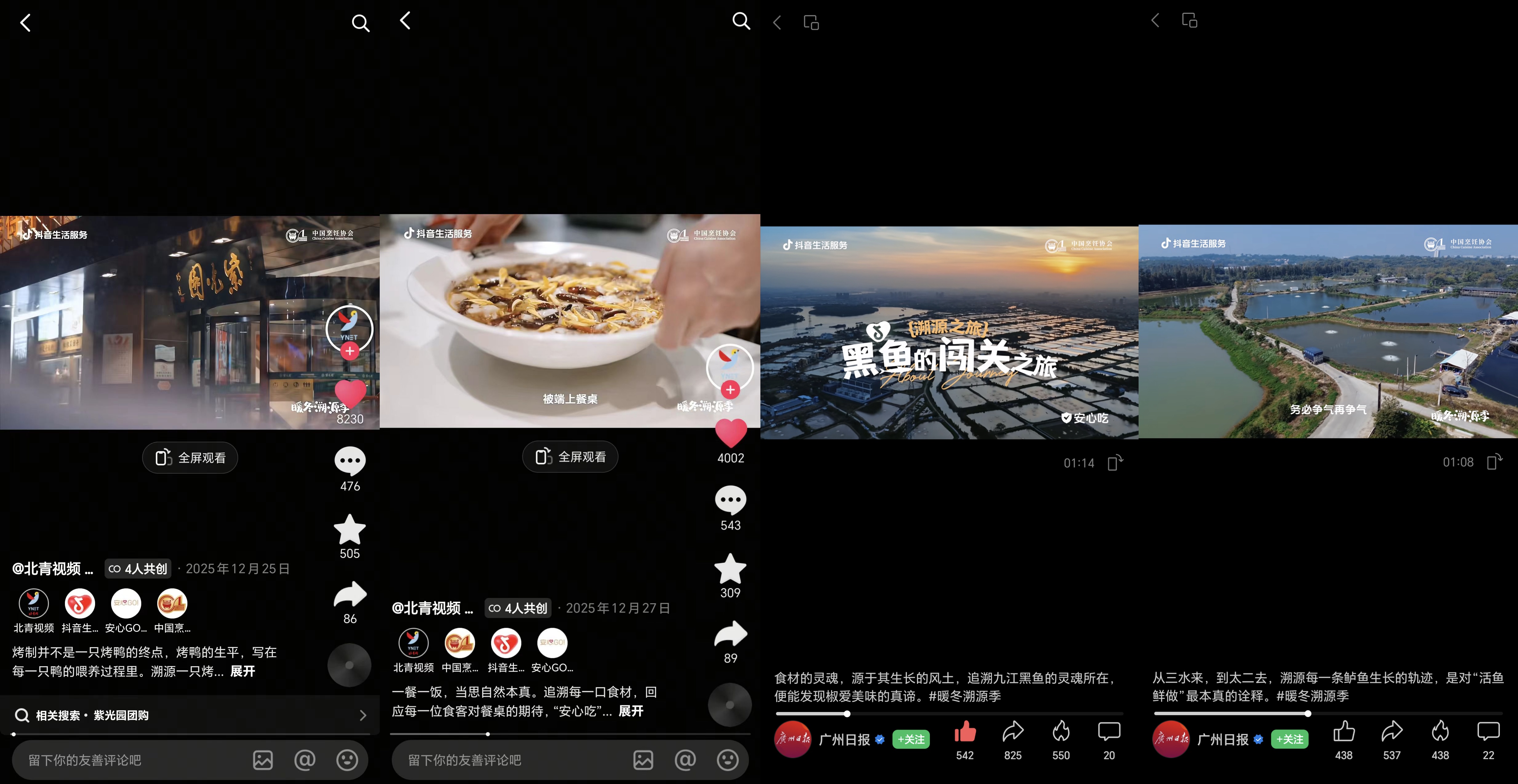 这一次,抖音生活服务联合中国烹饪协会、平台安心吃,以及4家餐饮品牌打造食材溯源路线,从广东到湖南、北京,解锁源头美味。通过可视化内容,抖音生活服务将食材来源、养殖过程、运输仓配、制作过程呈现在观众面前,使平日里“隐形”的产业链、供应链,成为可看、可知、可感受的显性内容,增进消费者对品质餐饮商家的信任,也使餐饮品牌在溯源宣介中突出差异化、提升品牌形象、增强用户粘性,最终达成品效合一。